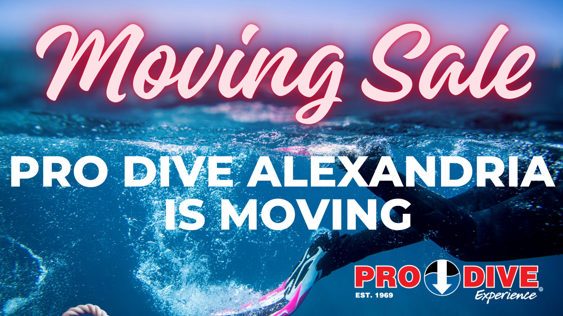 Pro Dive Alexandria is moving — and that means clearance sale time.